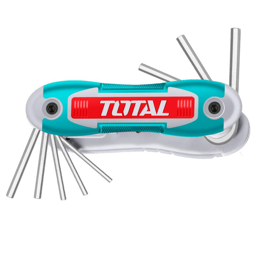 No brandИзпращаме до 7 работни дниСгъваемият комплект имбусни ключове TOTAL е практичен и удобен инструмент. Изработен е от висококачествена хром-ванадиева стомана, гарантираща усто...