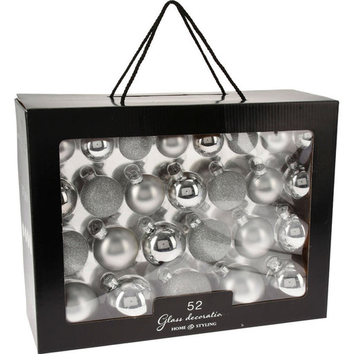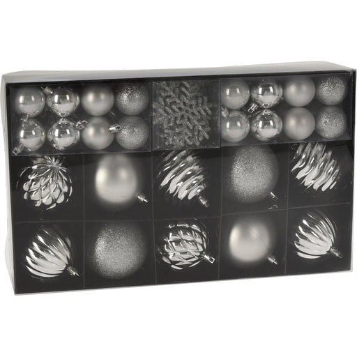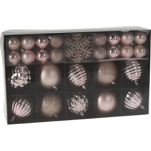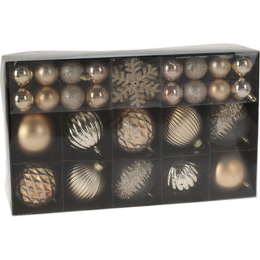 Комплектът съдържа 50 декорации: 10 топки с диаметър 8 см (матови/блестящи/шарени) 32 топки с диаметър 4 см (гланц/мат/блест) ...