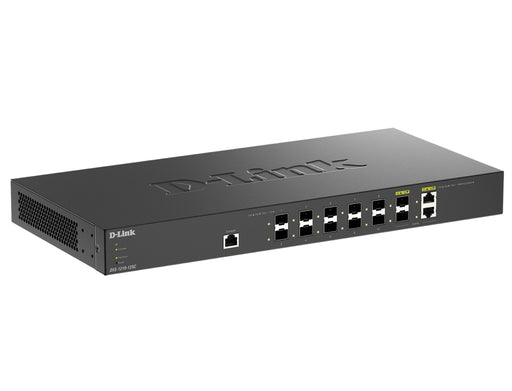 D-Link 12-портов интелигентен управляван суич, включително 10x10 SFP+ порта и 2 x Combo 10GBase-T/SFP+ порта за връзка нагоре