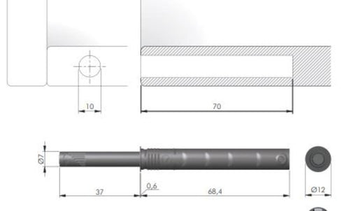 HäfeleВ наличностБутон с натискане в комплект с адаптор за външен монтаж. • Диаметър: 10мм • Ширина: 15мм • Дължина: 150мм