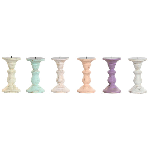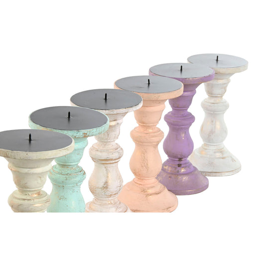 Канделабър Home ESPRIT Жълт Син Зелен Розов Метал Дърво манго Shabby Chic 10 x 10 x 18 cm