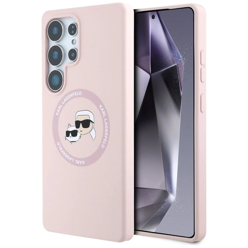 Karl Lagerfeld Силиконов калъф с двойни глави и кръг MagSafe Samsung Galaxy S25 Ultra Pink