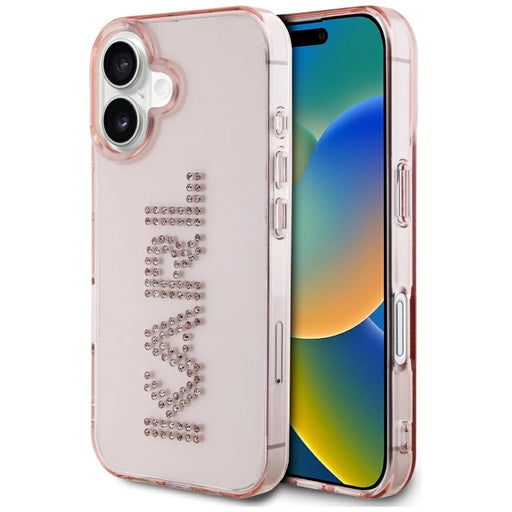 Калъф за iPhone 16 с лого на Karl Lagerfeld IML Rhinestones - розов
