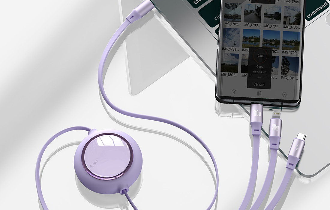 Fast charging with power up to 100 W? Ability to connect 3 devices simultaneously? Length adjustment in 5 steps? With Baseus, all this is possible! The flat cable 3 in 1 CAMLC-AMJ05 is equipped with 3 different connectors - micro USB, USB-C and Lightning. It allows you to transfer data at a speed of 480Mbps. Durable and wear-resistant - it also catches the eye with its elegant, modern design.