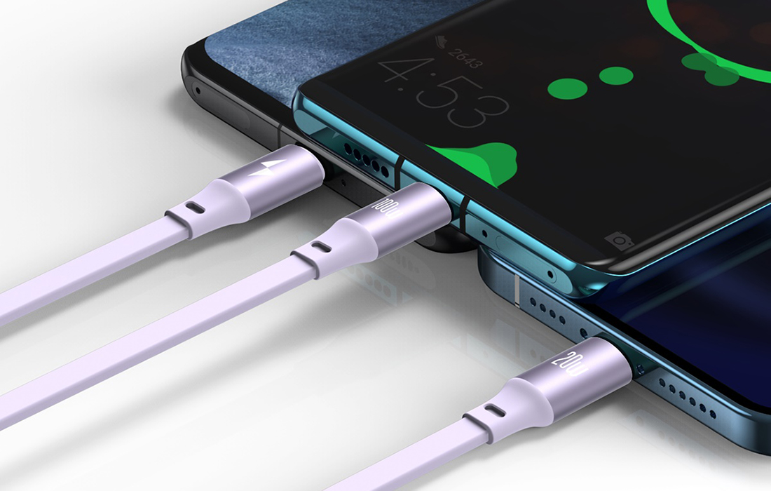 One universal cable is enough to power up to 3 devices simultaneously. Among other things, the USB-C connector allows you to charge laptops, tablets and smartphones with a power of up to 100 W. Lightning 20W is suitable for Apple-branded devices. Micro USB lets you power phones, power banks, and even hand fans and desk lamps, among other things.
