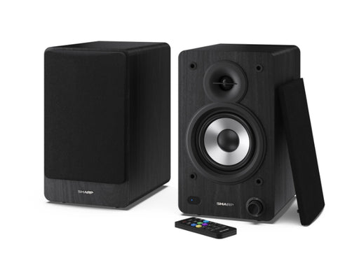 Sharp Audio Systems CP-SS30(BK), Hifi Systems BOOKSHELF SPEAKERS 60W (2 x 30W) RMS 2, Bluetooth v5.0, USB възпроизвеждане, MP3 аудио декодер, RCA L/R In, 3,5 mm Aux-in / line-in, Цифров оптичен вход, Дървена високоговорител, Черен