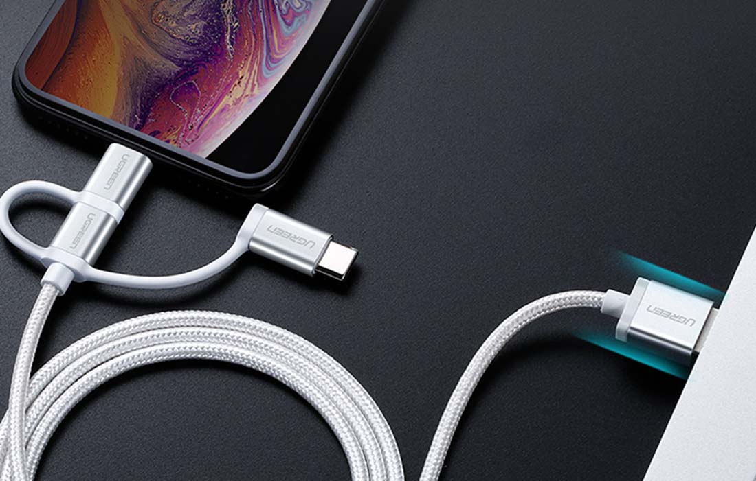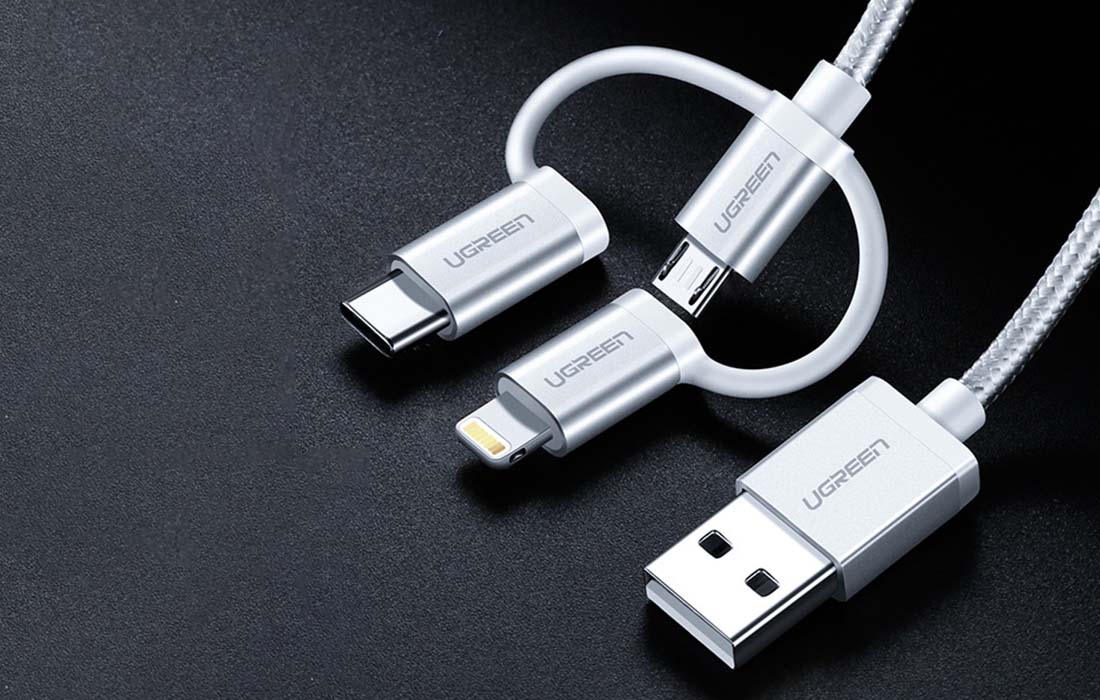 USB cable 3 in 1 UGREEN US186 Type-C / Micro USB / Lightning, 1m (silver)