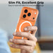 Прецизно изработеният дизайн пасва перфектно на смартфона, а повдигнатите ръбове около екрана и камерата ефективно предпазват устройството от драскотини и удари. Минималистичният дизайн се съчетава с практични решения, осигуряващи комфортна ежедневна употреба. Елегантна рамка около обектива допълва дизайна, подобрявайки защитата на камерата и придавайки на целия калъф премиум вид.
