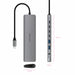 USB HUB NANOCABLE е универсално устройство, създадено да разшири възможностите за свързване на компютри и лаптопи, особено тези с USB-C портове. Този хъб позволява едновременно използване на множество устройства благодарение на конфигурацията си с 3 USB-C порта (USB 3.2) и 2 USB-A 3.2 порта, улесняваща бърз трансфер на данни и ефективно свързване на периферни устройства като твърди дискове, клавиатури или мишки. Освен това разполага с HDMI изход, поддържащ 4K видео предаване, идеален за външни монитори или телевизори, което разширява възможностите за визуализация и продуктивност. Друга важна характеристика е 3.5 мм жак за аудио, позволяващ свързване на слушалки или тонколони без нужда от допълнителни адаптери. Устройството може да осигури до 100 W мощност за зареждане, което позволява да поддържате устройствата включени по време на работа, без да се компрометира автономията. Сивият му цвят придава изчистен и професионален дизайн, подходящ за офис и бюро. Компактен и лесен за пренасяне, този хъб е цялостно решение за потребители, които искат да свързват няколко устройства и да повишат продуктивността си без усложнения, използвайки най-новите USB технологии и интеграция на видео и аудио сигнал. Накратко, NANOCABLE USB Hub предлага стабилна и гъвкава свързаност, адаптирайки се към съвременните нужди на потребители, търсещи функционалност и надеждност в едно устройство.